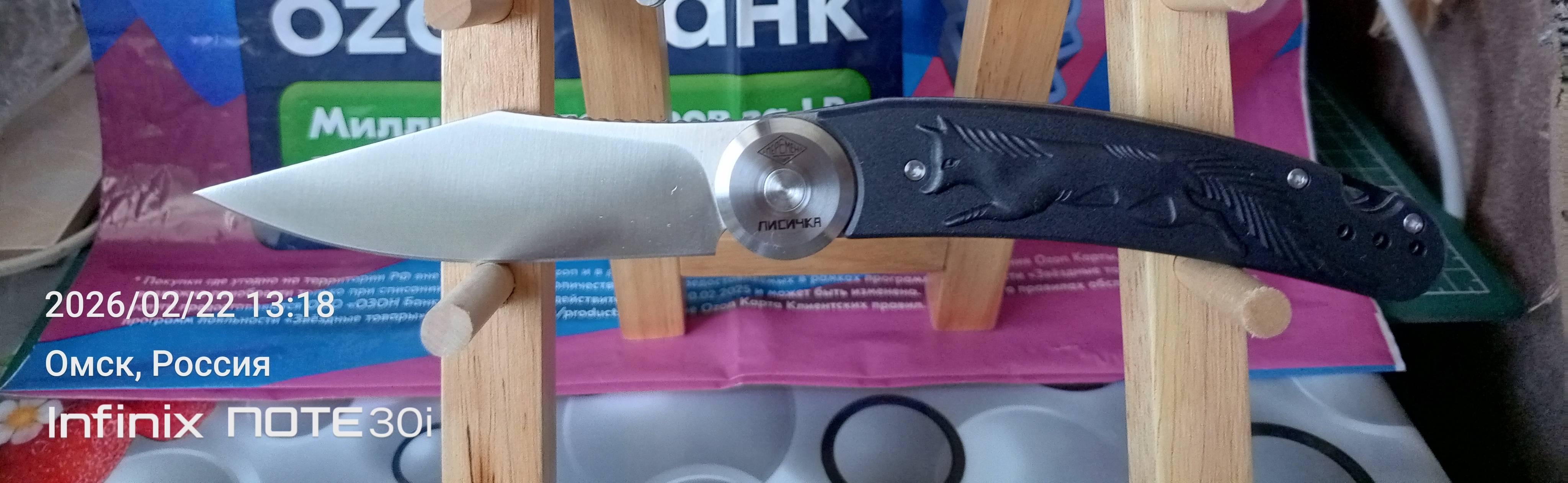Нож понравился,сталь неплохая,заточку держит удовлетворительно,по слесарке и обработке всё хорошо,вес небольшой в руке сидит уверенно.Один минус,при открытии ножа он как то не очень бодро открывался,раскрутил осевой,а там шайбочки из фторопласта,заменил их на свои из латуни,механика заметно улучшилась.